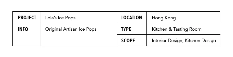 The interior design we created for Lola’s Ice Pops latest kitchen and tasting room expresses a simplistic and bright style.