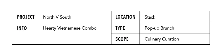 Hosted by Cory Quach and Hien Do Dang, North V South brings Vietnamese culinary heritage to life. The duo first began as a Vietnamese-themed brunch for a group of close friends, then expanded to pop-up brunches hosted at different venues, one at Stack, positioning Vietnam’s diverse culinary offerings via unique dining sessions.